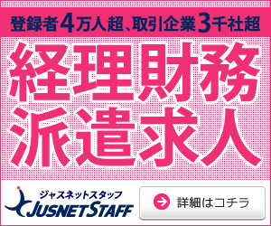 会計、税務、経理・財務分野の派遣の仕事を扱っている派遣会社としては、「ジャスネットスタッフ」があります。
